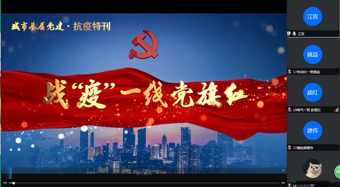 本网讯  为落实学校关于常态化疫情防控“四个一”行动要求,充分发挥师生党员先锋模范作用,7月13日,机电学院组织全体党员线上观看公益专题片《战“疫”一线党旗红》。