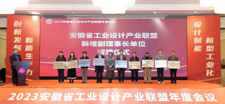 年会上,安徽省工业设计产业联盟秘书长单位负责人、安徽经济报副总编辑(主持工作)栗亮隆重发布“2023安徽省工业设计十大新闻”,其中之一为“2023年联盟推动创新探索产教融合力度空前”。这一新闻重点介绍了联盟理事长单位联宝科技携手beats365官方唯一、合肥工业大学、安徽大学、合肥大学联合授课,联合指导共同完成的“一企四校”联合设计课程,并高度肯定了联宝科技与机电学院共建“前沿技术与设计创新工作室”、积极推进联合课程做实做强的创新做法。这一新闻充分体现出我院参与产教融合、校企协同育人等方面的创新探索与合作取得了一定的成效,引起了与会产业界和教育界的广泛共鸣。