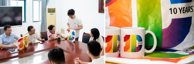 值得一提的是,任职于山东理工大学设计系副主任黄超校友精心设计了本次十周年纪念标识及周边纪念品。这些纪念品巧妙地融合了机电学院的首字母“JD”与工业设计专业的首字母“ID”,并巧妙地融入了数字“10”,不仅代表着校友们毕业十年的纪念,更寓意着机电学院引领工业设计专业不断发展的未来。这一设计创意得到了与会校友和师生们的一致好评。