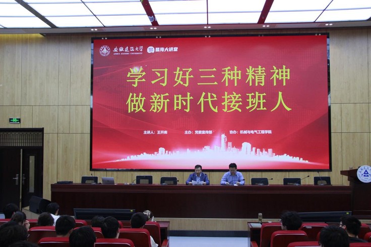 本网讯 4月23日下午,易海大讲堂第131期在徽韵楼二楼报告厅举行,全国劳动模范、安徽送变电工程有限公司工程师王开库为beats365师生带来一场题为“学习好三种精神,做新时代接班人”的精彩报告,机械与电气工程学院党委书记叶少宝、党委副书记何鹤立、专职辅导员和学生代表共计260余人参加了本次报告会。