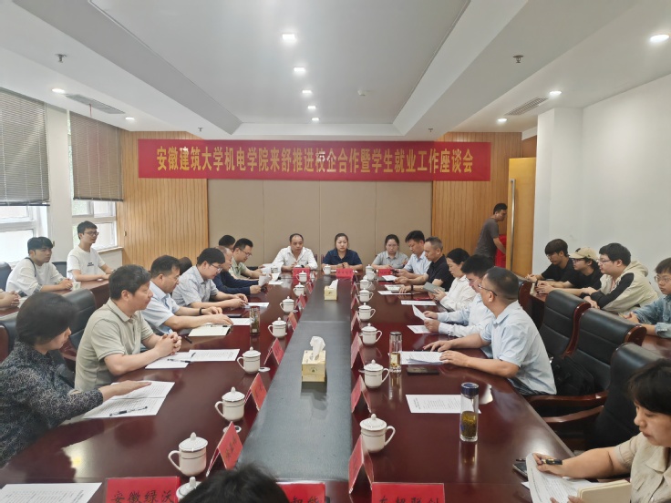 本网讯 5月27日,机电学院党委书记叶少宝率学院科研团队及应届毕业生18人,赴舒城县开展校企合作洽谈暨“送生入企”就业工作。舒城县委常委,经济开发区党工委书记、主任夏梅政出席座谈会,舒城县工业信息化和商务局党组书记、局长程斌,县委组织部部务委员杨燕,县经济开发区管委会副主任方浩,县人才综合服务中心主任朱丽娟等陪同调研。