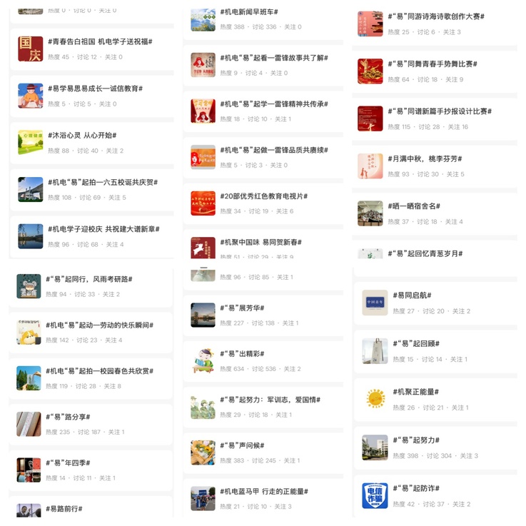 机电易班以“四位一体”网络育人模式为理论基础,以“红色齿轮”新生成长营为实践载体,推动平台实现从“管理工具”到“育人阵地”的系统升级,探索出“价值引领—行为塑造—能力提升”的育人新路径。展望未来,工作站将持续深化品牌内涵,拓展育人形式,全面提升平台的凝聚力、服务力与影响力,为培养担当民族复兴大任的时代新人贡献力量。