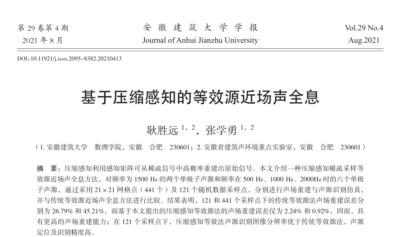 建筑声环境重点实验室研究生耿胜远同学近日在《beats365官方唯一学报》发表研究论文