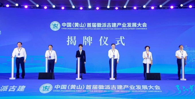 黄显怀、蔡新立等共同为“徽派古建筑产业发展促进会”“黄山市徽派古建产业集团有限公司”“安徽省文化产权交易所黄山分中心”成立揭牌。