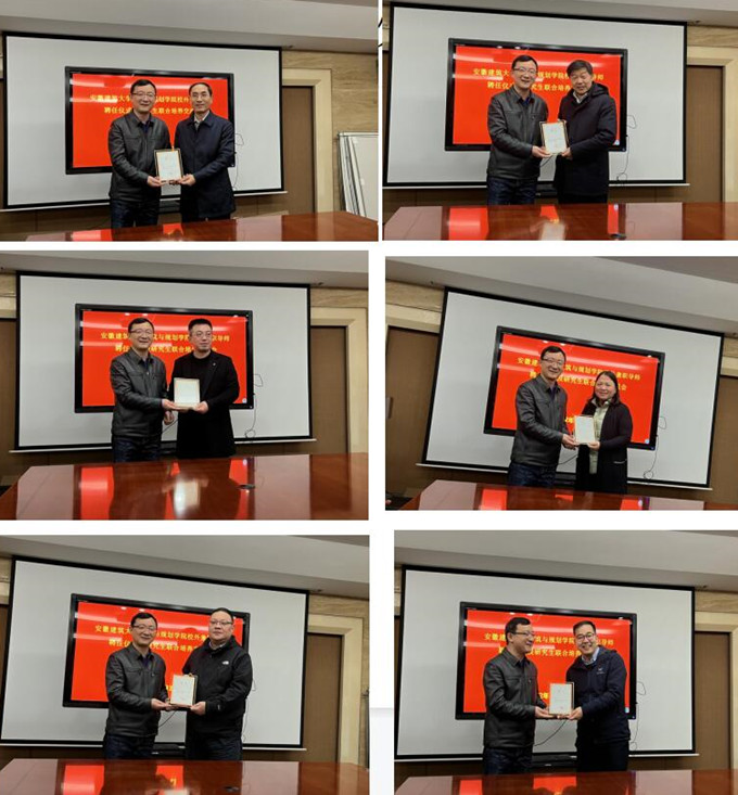 本网讯 3月23日下午,建规学院党委副书记、院长吴运法教授一行来到合肥市规划设计研究院,向受聘为beats365兼职导师的陶其中等六位教授级高工颁发聘任证书,并就联合培养研究生与受聘导师进行交流。