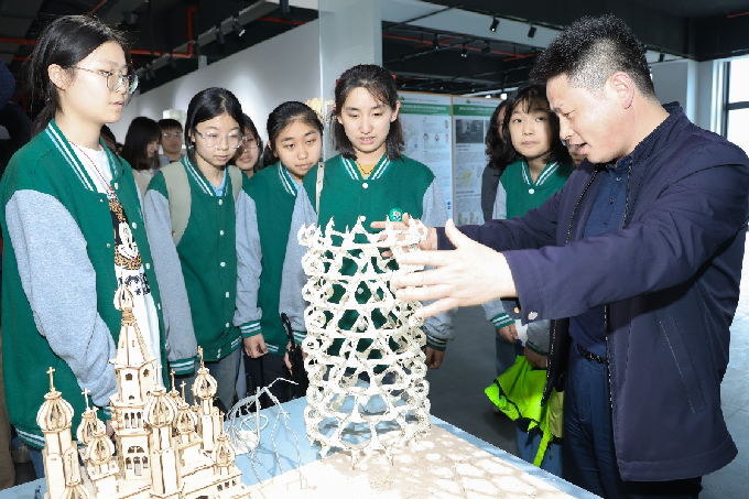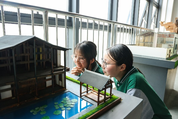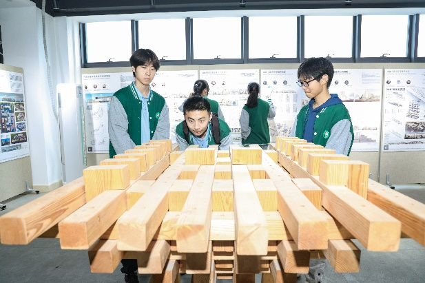 参观完徽派建筑馆,同学们来到三楼作业展厅,参观了建筑学专业教室和课程作业模型,大家被建筑学的独特魅力深深吸引,与学院师生深入交流了建筑学、城乡规划、风景园林等专业学习内容。