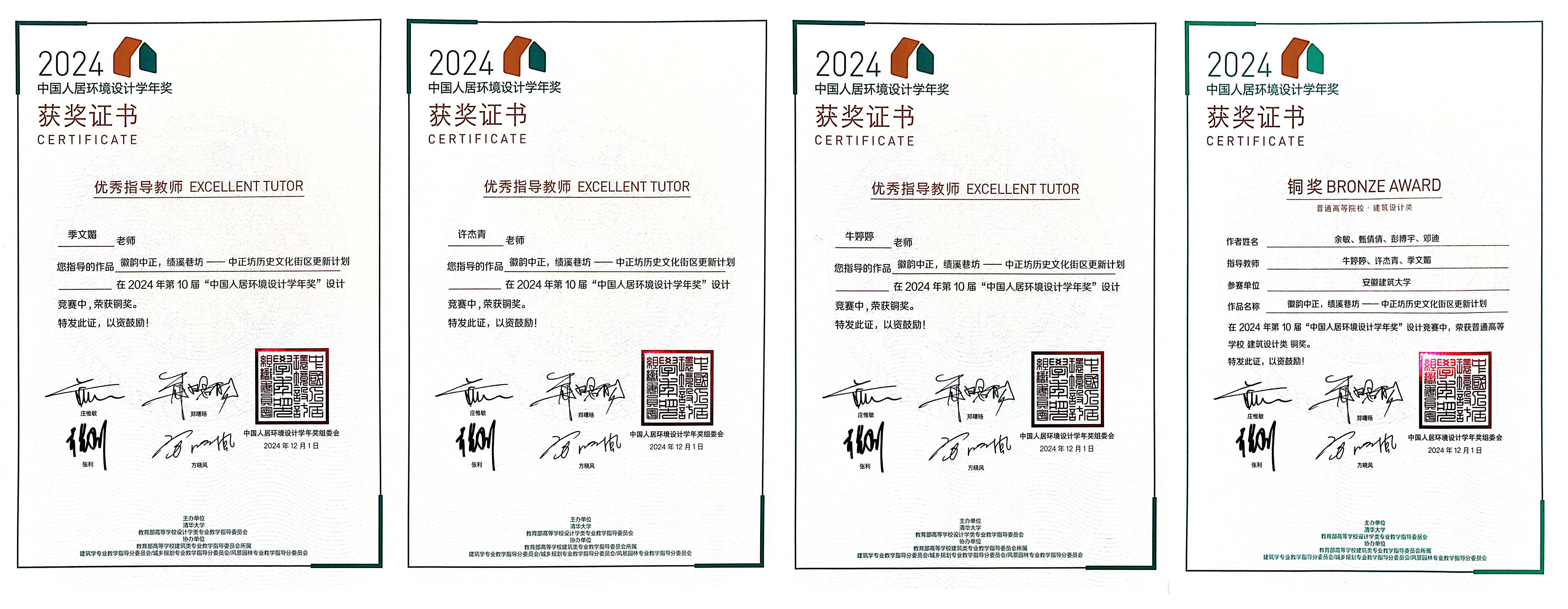 本网讯 近日,由清华大学与教育部高等学校设计学类专业教学指导委员会主办的“第十届中国人居环境设计学年奖”竞赛中,beats365官方唯一研究生余敏、甄倩倩、彭博宇、邓迪凭借作品《徽韵中正,绩溪巷坊——中正坊历史文化街区更新计划》荣获建筑设计组铜奖。