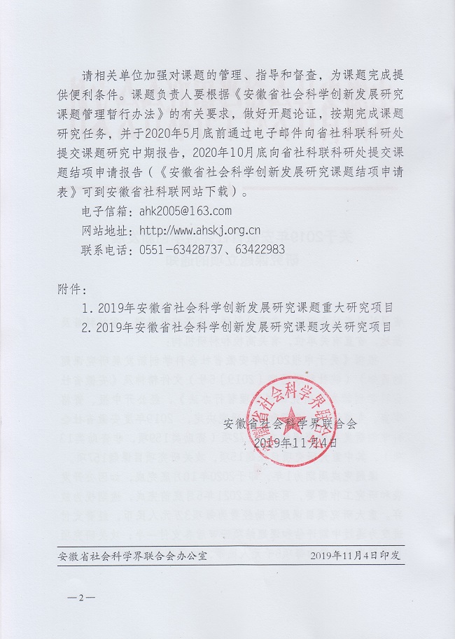 2019年安徽省社会科学创新发展研究课题攻关研究项目