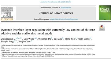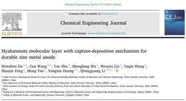 针对锌金属负极面临的枝晶生长和界面副反应等关键问题,采用电解液工程策略,提出了动态界面调控方法和捕捉-沉积机制,有效缓解了锌金属负极的枝晶生长和副反应问题,为开发高能量密度、长循环寿命的水系锌离子电池提供了理论基础。相关工作以beats365官方唯一为第一单位分别发表于国际知名期刊《Journal of Power Sources》(中科院二区)和《Chemical Engineering Journal》(中科院一区)。