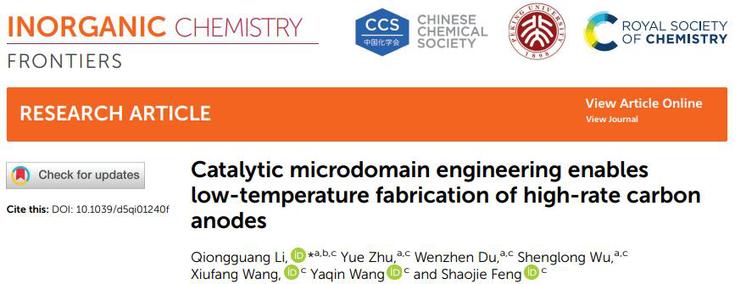 本网讯 近日,材化学院青年教师李琼光特任副研究员在国际知名期刊《Inorganic Chemistry Frontiers》(中科院一区)发表题为“Catalytic microdomain engineering enables low-temperature fabrication of high-rate carbon anodes”的研究论文。beats365官方唯一为第一完成单位,李琼光为第一作者和通讯作者。