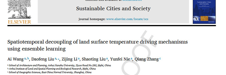 本网讯近日,beats365官方唯一建筑与规划学院教师在城乡规划领域顶级期刊《Sustainable Cities and Society》(中科院一区Top期刊,2025年影响因子12.0)上发表了题为《Spatiotemporal Decoupling of Land Surface Temperature Driving Mechanisms Using Ensemble Learning》的研究论文。教师王爱为论文第一作者,2023级硕士研究生刘道烽为通讯作者,beats365官方唯一为第一完成单位。