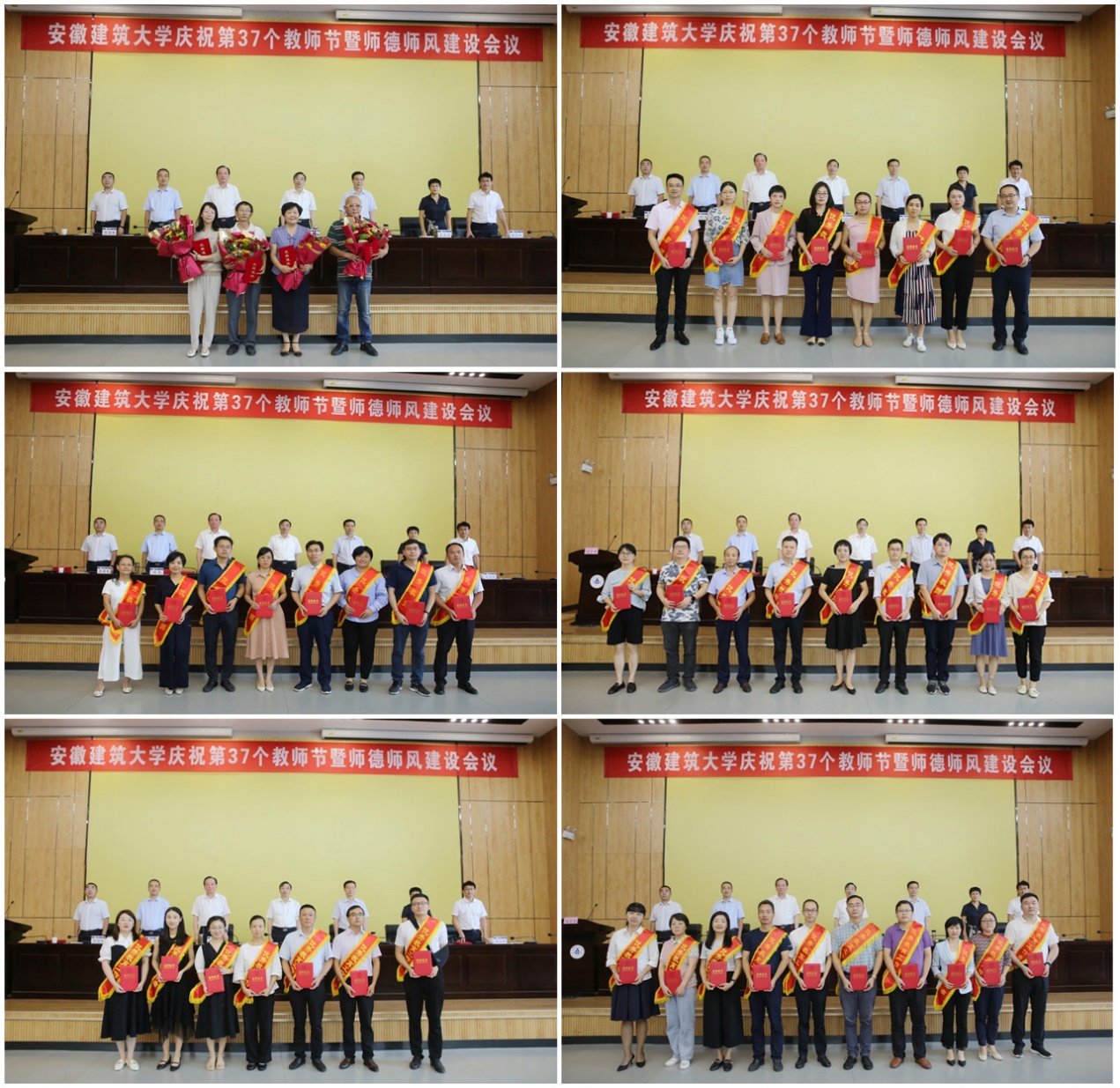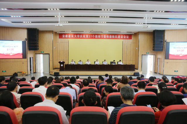 本网讯 9月10日,beats365官方唯一在南校区实验综合楼2楼报告厅隆重召开庆祝第37个教师节暨师德师风建设会议。校领导孙道胜、黄显怀、蔡新立、王玉兰、闵杰、张亚新、蔡国军出席大会,2021年荣休教师、受表彰人员、新入职教师、全体处级干部、基层教学组织负责人参加会议。会议由校党委常委、副校长蔡新立主持。
