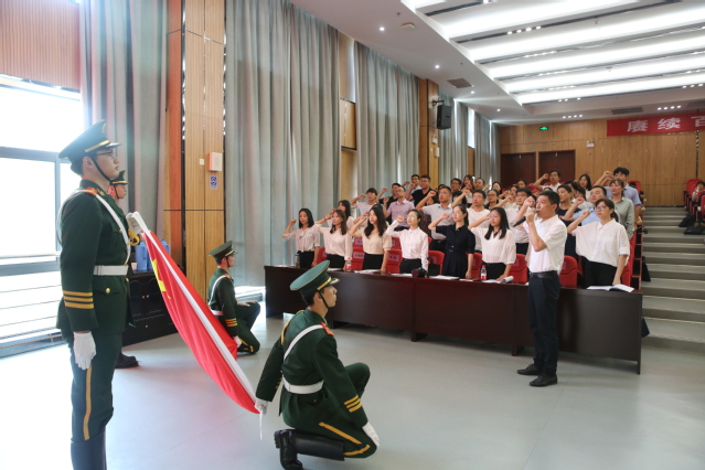会上,新进教师面对国旗进行了庄严宣誓,许下了一名人民教师的神圣承诺。