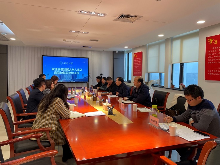 12月24日上午,党委教师工作部(人事处)部长(处长)潘和平、副部长(副处长)盛守奇一行7人赴安徽大学交流调研。安徽大学人事处处长赵晓明、副处长苏立宁及各科室负责人参加此次调研活动。
