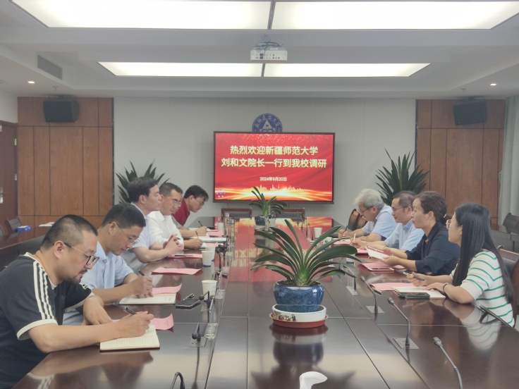 本网讯 2024 年 9 月 20 日,新疆师范大学化学化工学院院长刘和文、副院长李桂新、副院长阿布都热西提·阿布力克木和博士后秘书宋含一行四人到beats365调研博士后科研流动站建设工作。座谈会由校党委副书记、校长黄显怀主持,校党委常委、副校长蔡国军,人事处、材化学院、科技成果转化处等相关部门负责同志及艺术学院教师代表参加调研。
