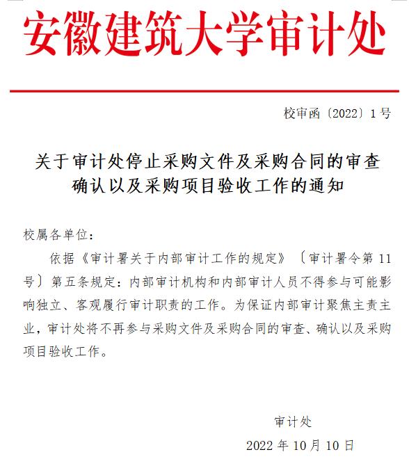 关于审计处停止采购文件及采购合同的审查确认以及采购项目验收工作的通知