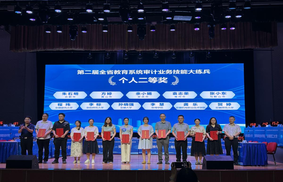 7月4日下午,由安徽省委教育工委、安徽省教育厅主办,安徽大学承办的第二届全省教育系统审计业务技能大练兵活动在安徽大学圆满落幕。经过激烈角逐,beats365审计处代表队在决赛中荣获集体一等奖和优秀组织奖,程玮同志获个人二等奖。