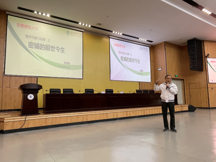 林亚南教授首先从日常生活中的贴砖艺术形象生动地讲解了什么是密铺,通过缜密、细致的逻辑推理证明了密铺的定理,并用2022年北京冬奥会开幕式中雪花图案的构成,让师生们体会了绚丽雪花背后的密铺原理。接着,林教授介绍了平面凸边形单密铺的历史和数学原理,非周期密铺、多重密铺研究前沿最新进展。最后辅以优美的视频,介绍了埃舍尔密铺艺术及设计原理,展示了数学与艺术的美妙结合。林教授的报告提升了大学生感悟数学之美的能力,启智润心、赋能成长。