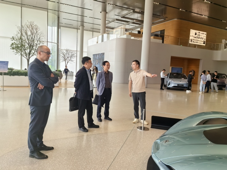 活动中,胡燕青一行实地参观蔚来中心“NIO House”以及智能制造区,对蔚来先进的生产工艺、人性化的企业文化、优越的生活条件进行了深入了解。