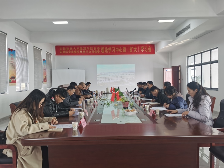 在与安徽华宝电缆有限责任公司党委共同开展的学习会上,首先围绕“第一议题”开展学习,双方参会人员分别领学了习近平对新时代马克思主义理论研究和建设工程作出的重要指示、第23期《求是》杂志发表的习近平总书记重要文章《必须坚持守正创新》、习近平在第四次“一带一路”建设工作座谈会上的重要讲话等内容;专题学习了习近平生态文明思想并围绕习近平总书记考察安徽重要讲话精神进行深入研讨。数理学院党委书记胡燕青介绍了学院基本情况以及2025届毕业生情况,重点介绍了学院近年来的科研成果、专业设置、师资力量,并希望与安徽华宝电缆有限责任公司加强合作交流,进一步深化产教融合、产学合作、协同育人,推动高校人才培养与地方产业发展紧密结合。