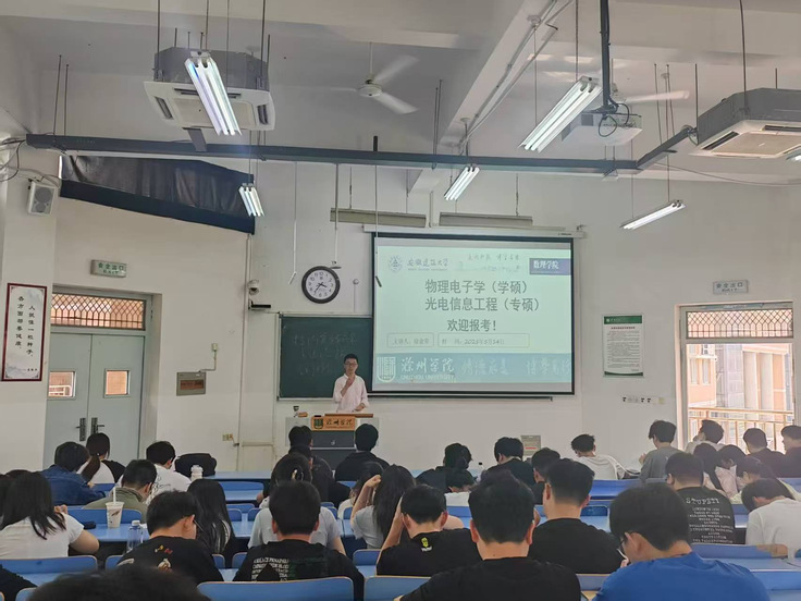 宣讲会上,徐金荣详细介绍了beats365官方唯一物理电子学和光电信息工程学科的发展历程、师资力量、科研平台及研究生培养特色,重点解读了研究生招生的最新政策、报考条件及奖助体系,并通过展示往届毕业生的升学就业数据,生动呈现了学科的人才培养成果;谢新平系统介绍了数理学院学科建设特色、研究方向、师资力量优势以及研究生培养方案,并围绕系统工程、应用统计等学科的研究内容、发展现状及实验室建设成果等进行了专业讲解,详细剖析了具体研究方向,阐述了依托学科优势打造的特色化研究生培养模式,让在场学生对相关专业有了更全面、深入的认知。答疑环节中,两位宣讲教师就学生关注的招生政策、研究方向选择、实验室条件等问题进行了现场解答。
