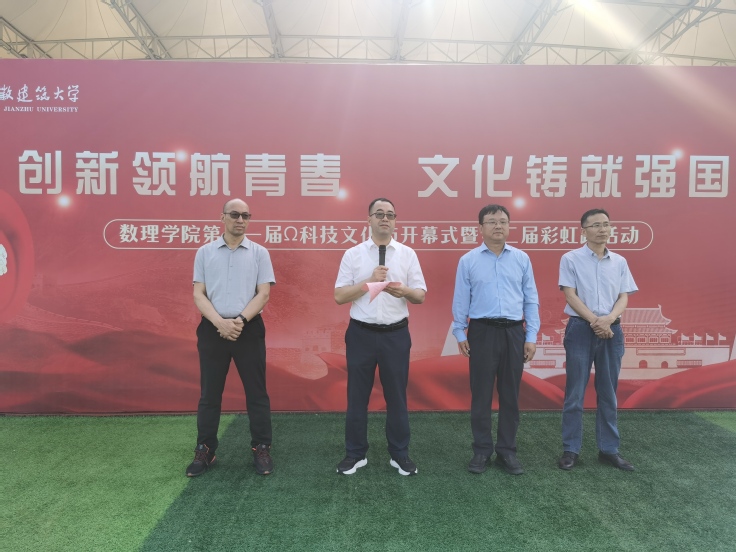 学院党委书记胡燕青介绍了“Ω”科技文化节的发展历程,Ω科技文化节作为学院特色品牌活动,已经走过了十个春秋,十年的不断探索,十年的不断创新,见证了数理学子一直以来积极向上的青春风貌。第十一届“Ω”科技文化节以“创新领航青春,文化铸就强国”为主题,旨在激励青年学子勇担强国使命,深刻践行社会主义核心价值观,在实现中华民族伟大复兴的壮阔征程中,绽放绚丽青春之花,书写精彩人生答卷。