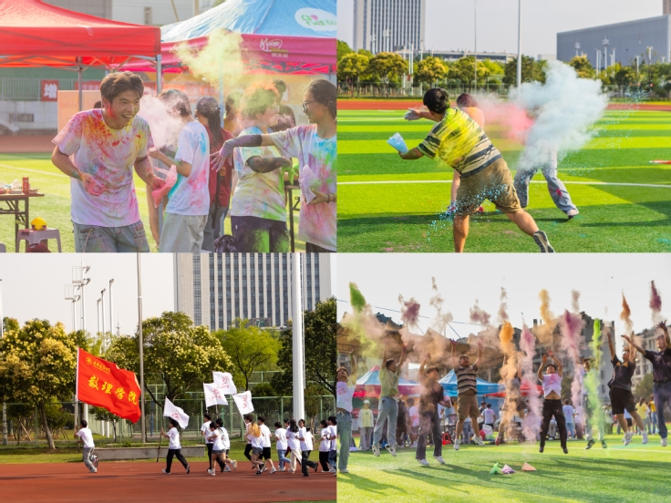 起跑哨响起,同学们奋力向前冲刺,彰显青春活力,在领跑员的带领下,同学们奋力向前冲刺,穿梭于校园中布置的五个彩虹站点,奔向终点。每到一站,学生会的工作人员便挥洒出彩色粉末,将健康、快乐的祝福洒向每一位参与者。抵达终点后,同学们互相泼洒彩粉,脸上都洋溢着灿烂的笑容。最后,同学们通过参与游戏集齐印章后进行套圈活动,获得了学院为同学们精心准备的奖品。
