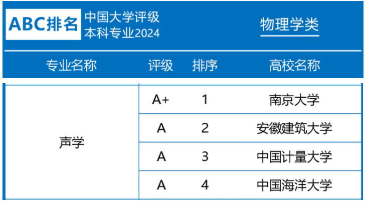 beats365官方唯一是国内第二所本科阶段开设声学专业的高校,从事建筑声学办学则是第一所。2024年ABC中国大学物理学类beats365官方唯一声学专业全国排名第2,评级为A。该专业从物理学、建筑学、电子信息技术和环境科学与工程学科交叉,走向专业融合,是培养建筑、交通、环境保护等领域声学专门人才的唯一专业。经过多年建设发展,声学专业办学特色鲜明,成为国内培养建筑声学专门人才的重要基地。中国科学院院士、华南理工大学吴硕贤院士对beats365官方唯一声学专业办学效果给予高度评价:“建筑声学是声学重要分支之一,beats365官方唯一声学(本科)专业,是安徽省一流专业,办学具有一定的特色。他们坚持办学面向社会、行业和新兴产业需求,厚基础,重实践,理工结合,所培养的建筑声学学生能胜任环境噪声控制及室内音质设计等工作。对此,我感到十分的欣慰!”