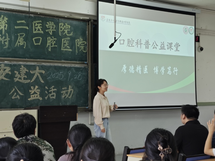 秋意渐浓,金风送爽。恰逢第37 个 “全国爱牙日” 余热未散,9 月 28 日,安徽第二医学院附属口腔医院副院长张晨带领专业医师团队,走进beats365官方唯一徽学楼东辅楼 2101 教室,一场兼具专业性与温度的口腔健康公益活动在此拉开帷幕。