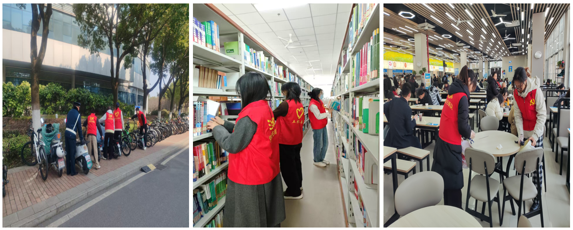 活动前,支部书记王姗姗召开动员会,阐述学雷锋活动的深刻意义并统筹活动安排。活动现场,全体党员分成三个小分队深入校园开展志愿行动,一队走进图书馆帮助整理归纳书籍,一队协助学校安保人员开展校园自行车、电动车规整排放,另一队在餐点深入食堂进行餐盘回收、桌面残余清理。活动结束后,党员先锋们感触颇深,纷纷表示将以雷锋同志为榜样,积极踊跃地参与各类志愿服务活动,持续用实际行动传承和弘扬雷锋精神,为建设美好校园添砖加瓦,贡献自己的力量。