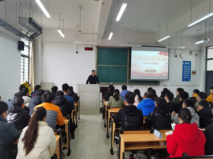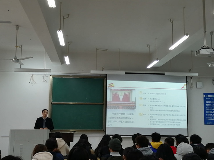 校领导们从同学们的现实关切出发,用最新详实的数据分析讲解,深入浅出地把最新的实践课题和新时代中国特色社会主义理论融合在讲义里,围绕深刻认识党和国家事业取得的历史性成就和改革发展大势,深刻认识我国发展环境面临的深刻复杂变化和“十四五”时期重要战略机遇期的新特征,深刻认识新发展阶段、新发展理念、新发展格局的科学内涵和理论与实践逻辑,深刻认识2035年远景目标和“十四五”时期发展的指导方针、主要目标、重点任务等方面,对十九届五中全会精神进行了系统阐释和深入解读。校领导勉励同学们理性爱国、真诚爱国和奉献爱国,希望同学们树立远大理想,厚植家国情怀,在全面建设社会主义现代化国家的新征程中,茁壮成长、砥砺品质、増长本领,与祖国同频共振,自觉在创新创业创造中,把个人梦想与国家需求紧密结合起来,在广阔的人生舞台上施展才华、竟展风采。