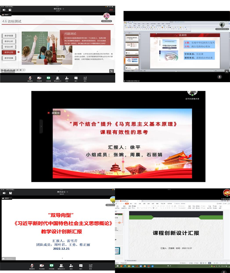 本网讯 为深入学习贯彻习近平总书记关于教育的重要论述,落实立德树人根本任务,推动教学改革创新,近日,马克思主义学院在线上举办了第三届教师教学创新比赛。学校教学督导组李齐全、李虹老师,学院教学工作委员会成员担任评委。