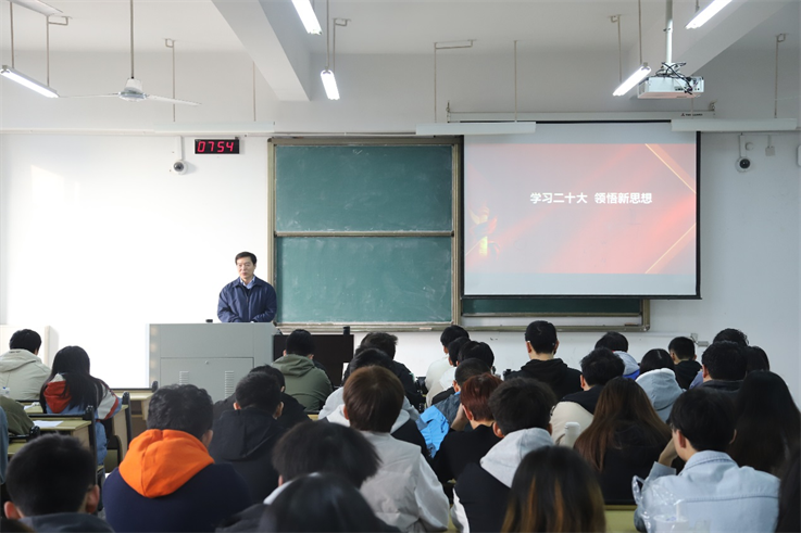 自11月上旬起,马克思主义学院以《学习二十大领悟新思想》为题,在全校大学生中开展“形势与政策”专题讲座,校领导纷纷深入课堂宣讲党的二十大精神,并走到学生中间,与学生谈心交流,了解他们的生活、学习现状和思想动态,引导学生学习领会党中央的战略目标和深远考量,坚定不移听党话、跟党走,受到学生热烈欢迎。