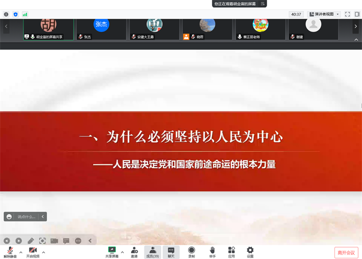 11月2日,马克思主义学院利用腾讯会议在线上召开了“习近平新时代中国特色社会主义思想概论”第二次集体备课会,胡金富、蔡正丽两位老师就“坚持以人民为中心”和“以新发展理论引领高质量发展”两个专题进行了教学内容的分析,分享了自己的教学设计思路,并就专题内容进行了说课展示。备课会上,两位教师都强调教学过程要有设计,教学内容要有侧重,以关键词为引领,以教学重点难点为核心,以入耳入脑入心为根本要求,创新教学方法和手段,提高教学效果。