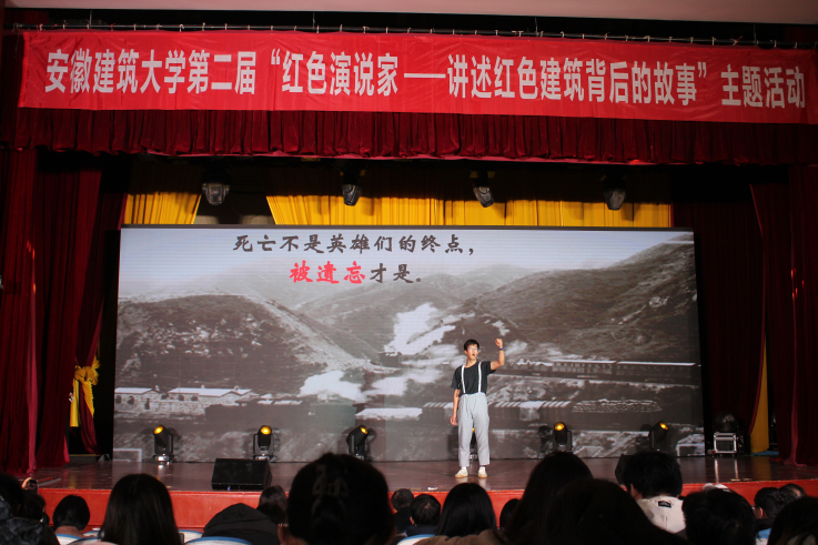 比赛现场,选手们聚焦中国共产党百年峥嵘岁月,围绕“渡江战役纪念馆”“皖南新四军军部旧址”“陈独秀、陈延年、陈乔年故居旧址”“王稼祥纪念园”等红色建筑,以大学生的视角,用生动的语言和饱满的情感真情讲述红色建筑背后党的故事、革命的故事和英雄的故事,或声泪俱下,撼人心魄;或铿锵有力,催人奋发;或娓娓道来,直击心田;或钩沉索引,发人深思,引领现场观众穿越时空,感受那一段段波澜壮阔的光辉岁月,充分展现新时代建大青年传承和弘扬红色基因,主动担当作为的信念与决心。
