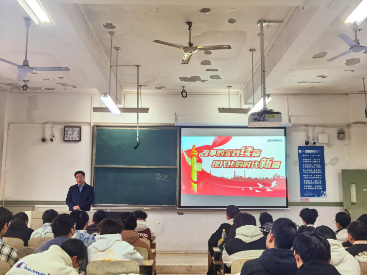 党委副书记、校长黄显怀在“开学第一课”“形势与政策”等课堂上以“把握历史主动 改革波澜壮阔”、“锚定关键领域 擘画改革蓝图”、“遵循改革规律 保持战略定力”为主体,强调改革开放是当代中国最显著的特征、最壮丽的气象,是决定当代中国命运的关键一招,也是决定中国式现代化成败、实现中华民族伟大复兴的关键一招,引导同学们深刻感悟以习近平同志为核心的党中央将改革进行到底的坚强决心以及进一步全面深化改革,以中国式现代化全面推进强国建设、民族复兴伟业的强烈使命担当。在给排水专业同学的课堂上,他和同学们分享自己在环能学院学习工作的过往经历,勉励同学们树立科技报国的伟大志向,将个人价值融于国家需要中,坚定信心、锚定目标、努力学习、全力以赴,为实现中华民族伟大复兴作出新的贡献!