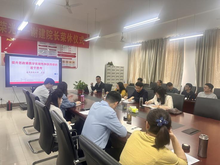 本网讯 为贯彻落实习近平总书记关于学校思政课建设的重要指示精神,进一步提升思政课教师的教学能力与专业素养,马克思主义学院开展“思政课教学质量年”系列活动。近日,全国高校青年教师教学竞赛思政组一等奖获得者、南京师范大学马克思主义学院王磊教授应邀来校,做“提升思政课教学实效性和获得感的若干思考”主题报告。本次活动由学院副院长(主持工作)马晓艳主持,马克思主义学院全体教师参加。