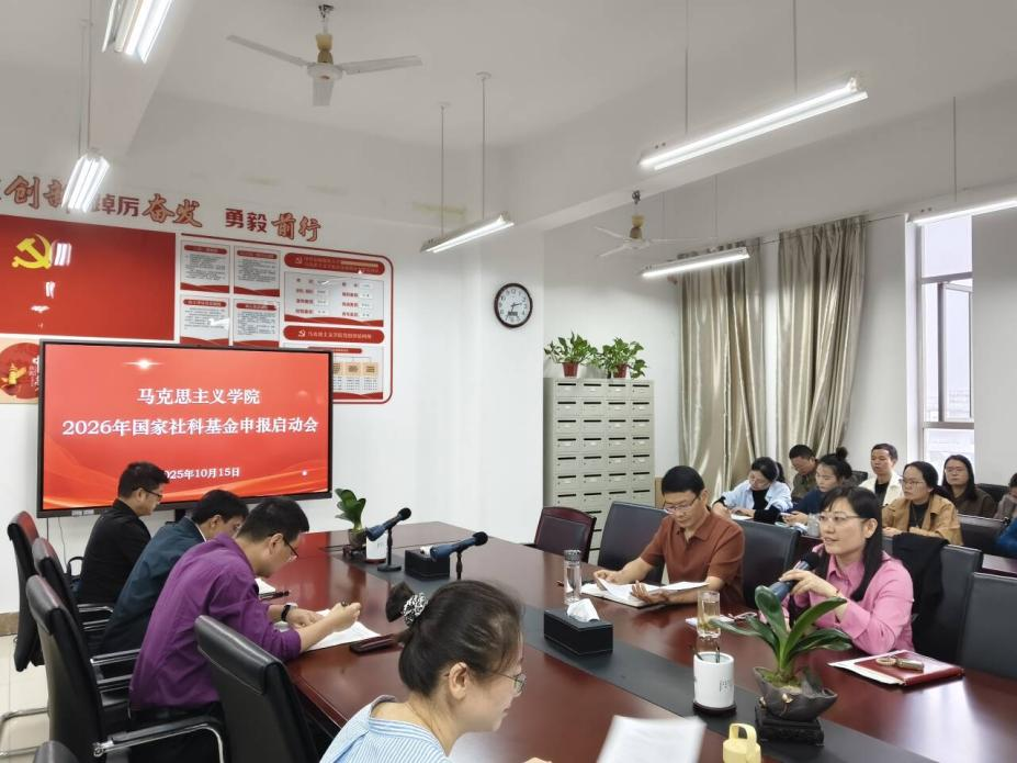 本网讯 为扎实做好2025年度科研工作总结和2026年度国家社科基金项目申报组织工作,有效提升项目申报质量与水平,10月15日下午,马克思主义学院在徽学楼1711会议室,举办了2025年科研工作总结暨2026年度国家社科基金申报启动会,会议特邀安徽大学徽学研究中心教授、博导王开队做主题报告,院长马晓艳主持,全体教师参加。