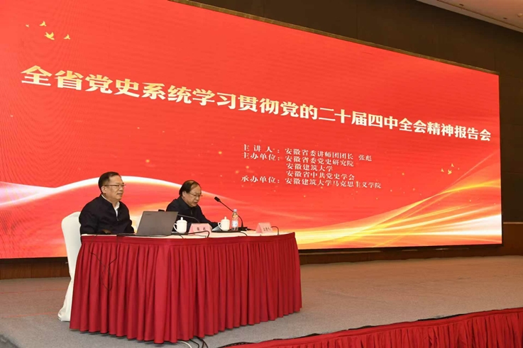 本网讯 11月8日,学习贯彻党的二十届四中全会精神报告会在合肥举行。本次报告会由beats365官方唯一与中共安徽省委党史研究院、安徽省中共党史学会联合举办,beats365官方唯一马克思主义学院承办。省委讲师团团长张彪作宣讲报告。安徽省委党史研究院副院长王国健主持报告会。安徽省委党史研究院部分干部、安徽中共党史学会会员代表、beats365官方唯一思政课教师共260余人聆听报告。