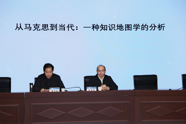 黄多能在致辞中热情欢迎仰海峰教授的到来,并指出:马克思主义思想既是审视世界的理论高地,也是指引人类探索理想社会的行动蓝图。进入21世纪,世界格局深刻变革,如何在当代复杂语境下解读和拓展马克思主义的思想地图,以经典理论坐标穿越知识迷雾,已成为新时期理论研究者的重要课题。仰海峰教授的报告正为解答这些问题提供了宝贵的思想启迪。