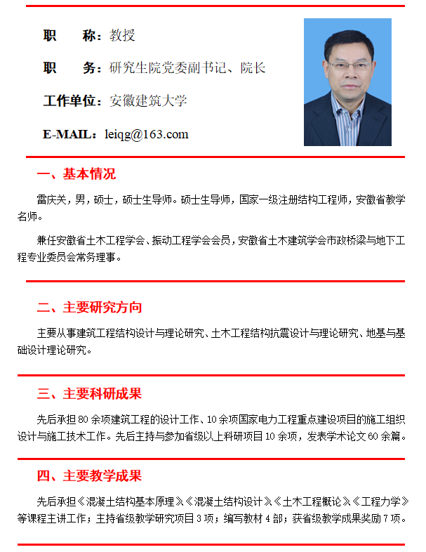 安徽省教学名师 雷庆关教授