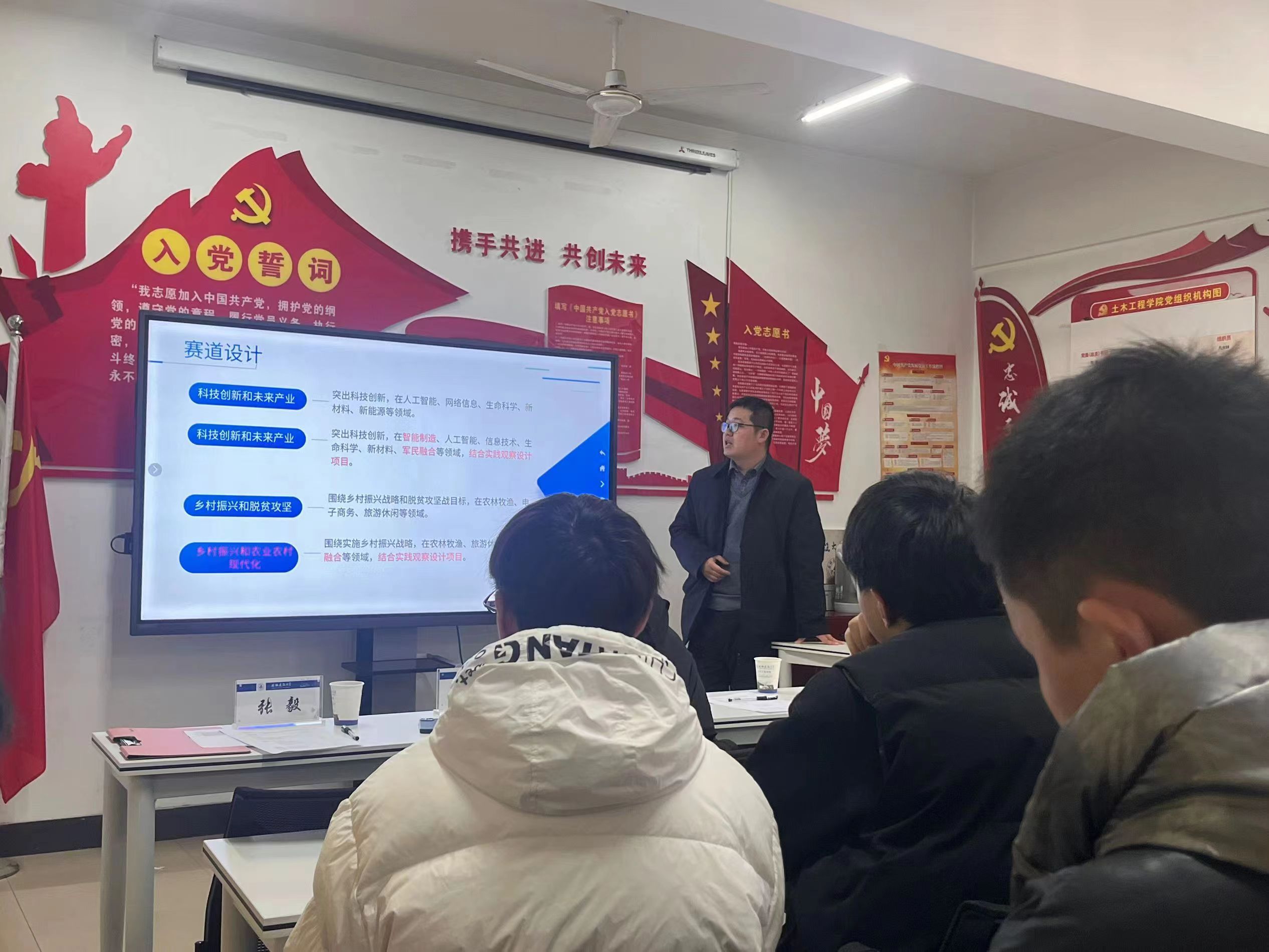 本网讯 为贯彻落实国家双创工作部署,进一步聚焦为党育人功能,引导和激励学生激发创新精神,培养创业意识,把握时代脉搏。根据学校团委“挑战杯”竞赛工作的有关部署,1月9日下午,由土木学院双创实践教育中心、院团委、院学生共同承办的2024年“挑战杯”竞赛预热交流活动,在土木学院三楼会议室举行,活动由学院党委副书记马智鑫主持。 本次活动邀请了中国管理科学学会科技成果转化专委会副秘书长许飞,瑞城创投合伙人、团中央专家库成员张平辉和校团委创新创业负责人张毅老师,指导学生提升竞赛能力,打磨作品,积极准备2024年“挑战杯”中国大学生创业计划竞赛。