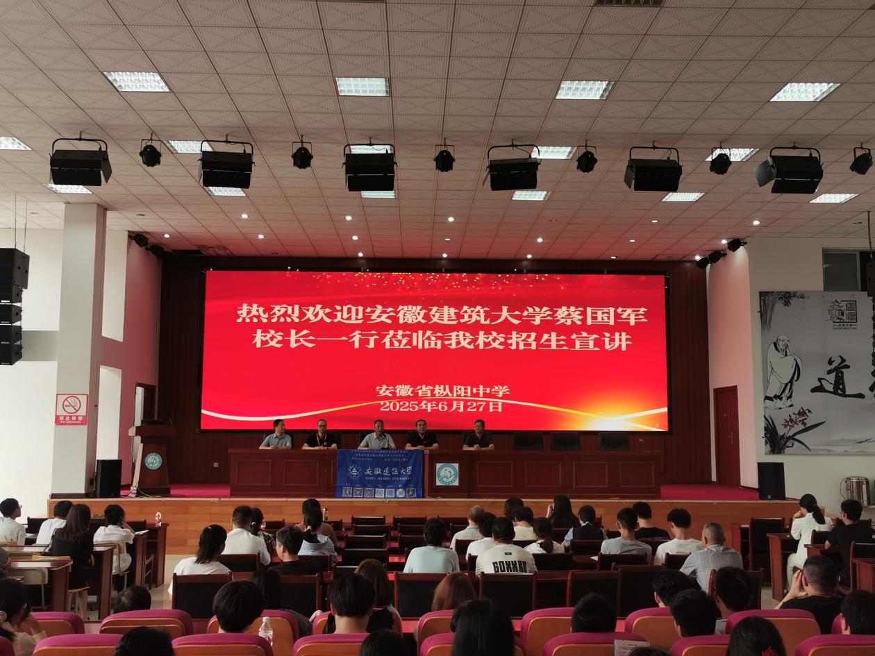 本网讯 为切实做好2025年招生宣传工作,进一步提升生源质量,6月27日,校党委副书记、校长蔡国军率队,后勤管理处党总支书记姚勇、土木学院院长张宁、教务处副处长张广斌、建规学院副教授陈宜瑜等一行人赴枞阳中学开展2025年本科招生宣传工作。