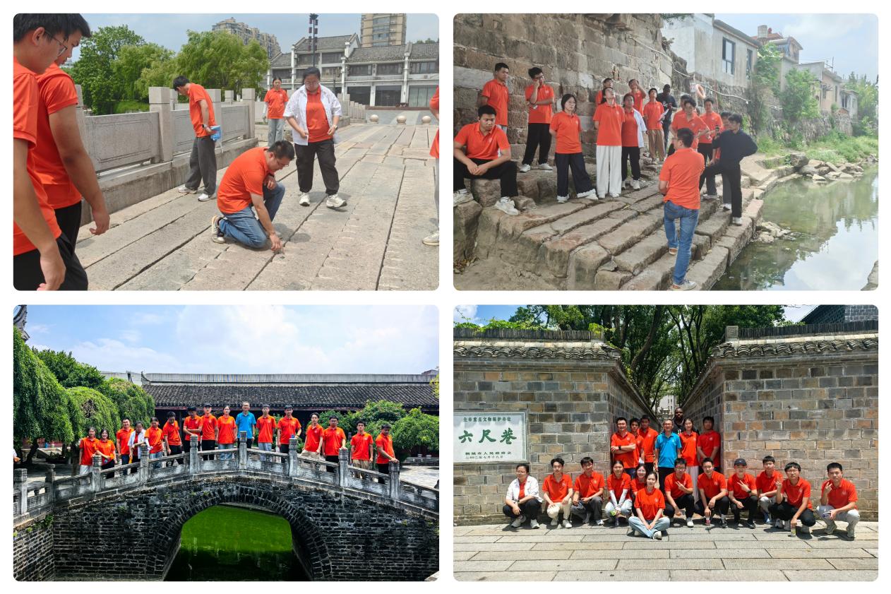 在调研过程中,团队不仅关注桥梁的物理安全,更深入挖掘其背后的文化价值。在桐城紫来桥畔,周宇老师现场解析古代工匠的智慧结晶:“桥梁两侧的悬链线设计不仅美观大方,更重要的是能够确保桥梁各截面主要承受压力,从而大大增强了结构的稳定性,更令人叹服的是桥梁下部结构的精妙设计。古代工匠在主石板下方巧妙地铺设了两层辅助石板,这种构造充分运用了材料力学和结构力学的原理,既有效降低了桥面的挠度,又显著提升了桥梁的整体承载能力,堪称古代力学的活教材。”文庙状元桥上,队员侯嫣触摸桥身感慨:“古代学子‘独占鳌头’的荣耀,与今天我们追求专业精进的精神一脉相承。”六尺巷中的谦和故事,则让队员们深刻理解了工程伦理的人文内涵,增强了文化自信与历史责任感。