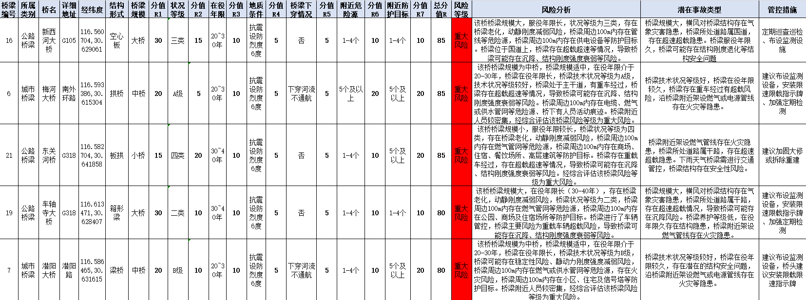 通过五天的实地调研,团队根据“桥梁风险初始评价指标及评分标准”对检测桥梁进行打分,累计完成23座桥梁风险评估,形成近1万字调研报告,详细描述了对每个桥梁的风险分析、潜在事故类型分析和建议管控措施。王彦博同学在日记中动情描述:“那些斑驳的桥栏,是岁月写给工程师的情书,提醒我们既要传承匠心,更要创新守护。”目前,团队正将调研数据转化为可视化风险图谱,以便后续持续跟踪桥梁维护进展;同时,以此项目为基础,参加第七届“全国大学生‘茅以升公益桥——小桥工程’设计大赛”,确保实践成果真正落地生根。
