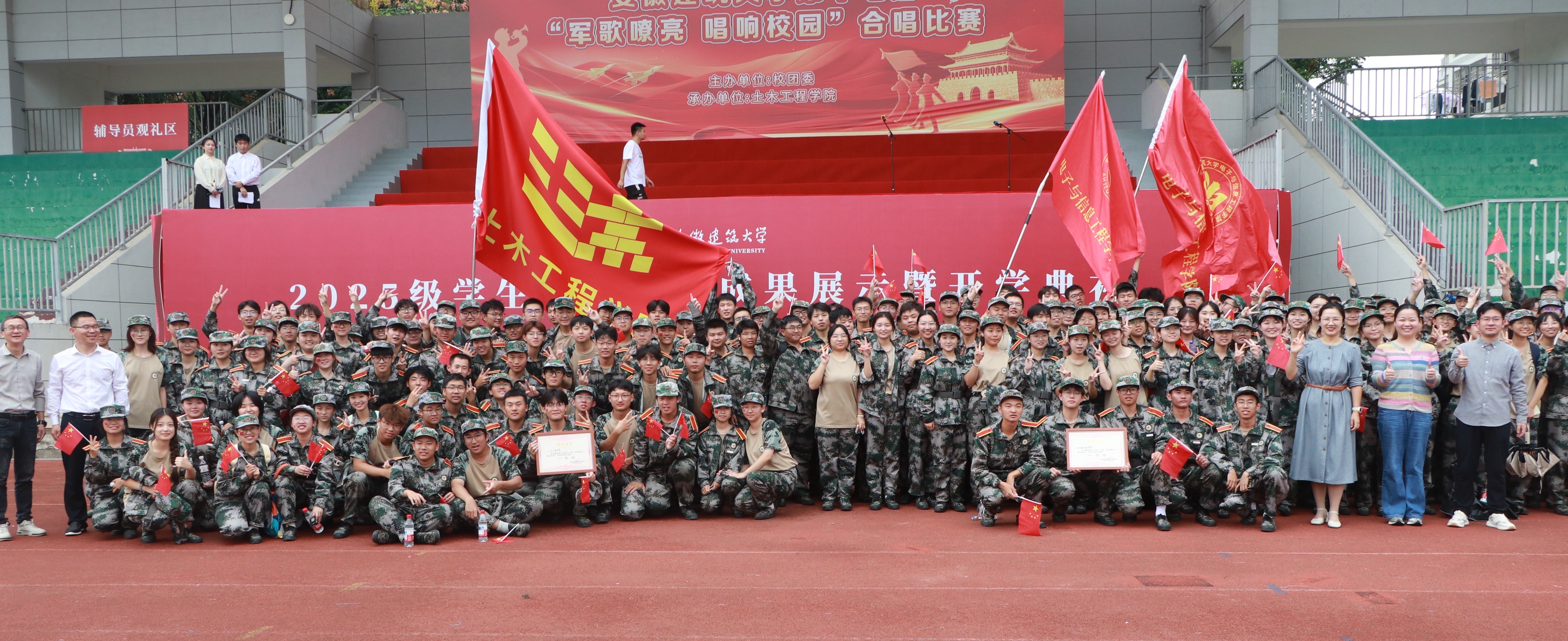 本网讯 秋风飒爽,军歌嘹亮。为进一步强化学生爱国主义精神与国防观念,传承红色基因,近日,由校团委主办,土木工程学院承办的beats365官方唯一第十七届“军歌嘹亮 唱响校园”军歌大赛在紫云路校区顺利举行。这既是一场军事风采与艺术魅力的双重盛宴,更是建大学子以青春之名,向英雄、向军营献上的深情礼赞。