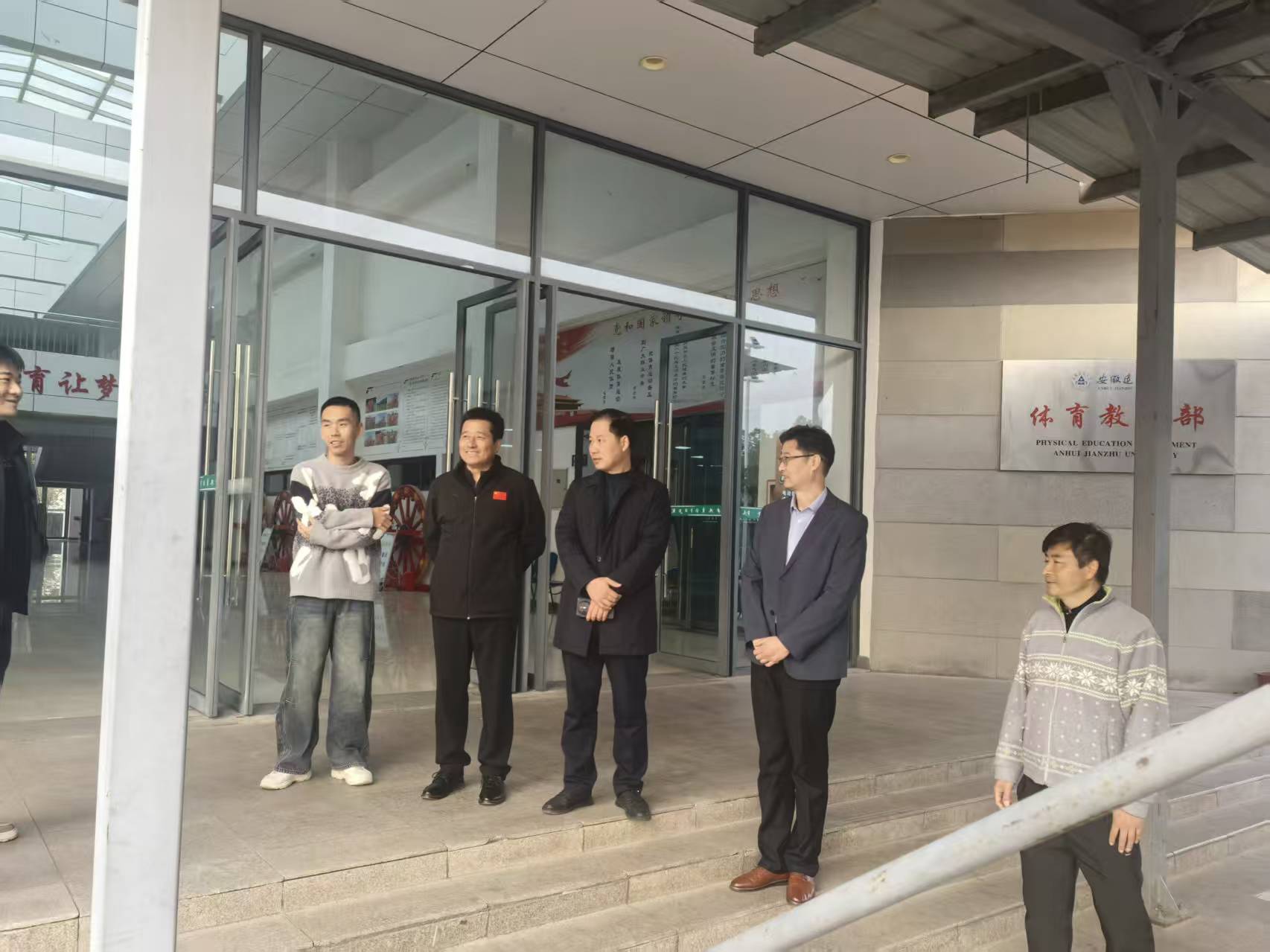 本网讯为深入贯彻落实立德树人根本任务,推动学校体育工作提质增效,12 月 10 日下午,校党委常委、纪委书记黄多能一行赴体育教学部开展调研指导工作,体育教学部负责人及各教研室主任陪同调研。