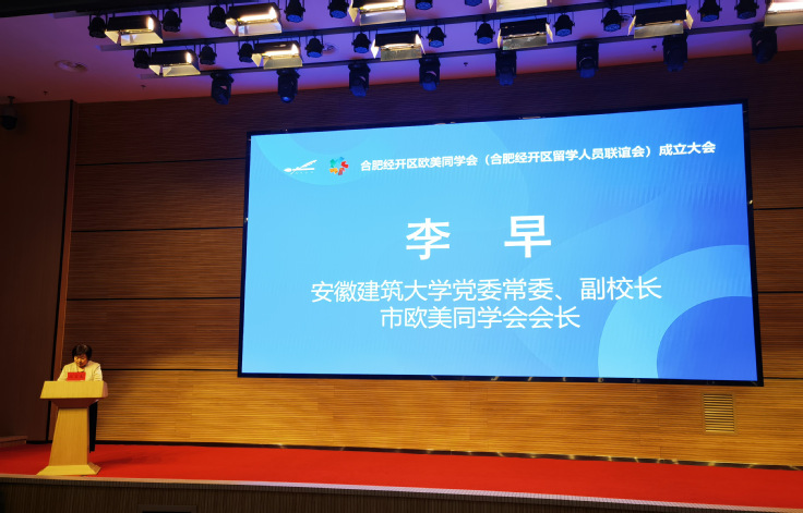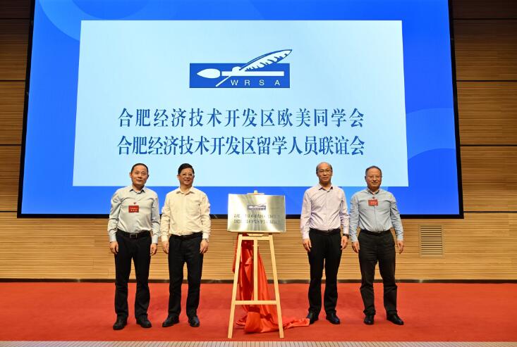 近日,合肥经济技术开发区欧美同学会(合肥经济技术开发区留学人员联谊会)成立大会在中德国际会客厅召开。区党工委统战工作领导小组成员单位、区内各统战团体、民主党派、校地统战联盟驻地院校代表、属地街道大社区(工业园)党委统战委员及统战人士、区欧美同学会全体会员代表共计120余人参加会议,大会举行了揭牌仪式。校党委常委、副校长、合肥市欧美同学会会长李早、校党委统战部工作人员应邀出席。