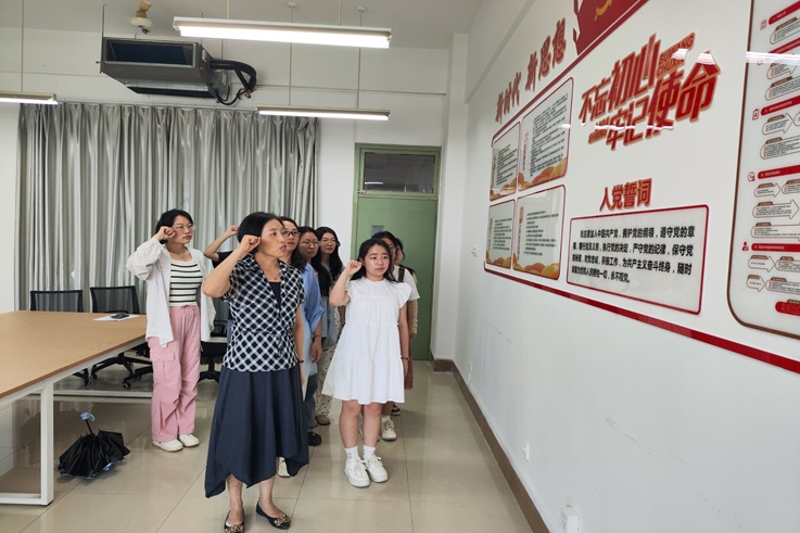 本网讯 为进一步加强党员教育,提升党员的党性修养,6月12日,外国语学院在徽学楼1714会议室举行入党宣誓仪式,学院新发展的预备党员和转正党员参加,仪式由学院党总支书记余鸿主持。