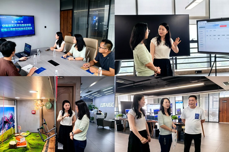 云伴数字科技(安徽)有限公司负责人对学院一行的到来表示热烈欢迎,并详细介绍了公司的发展历程、主营业务及未来规划。她表示,随着人工智能技术的不断发展和应用,公司对于高素质、复合型人才的需求日益迫切。外国语学院培养的外语人才在语言能力、跨文化交际能力等方面具有显著优势,与公司的发展需求高度契合。她期待双方能够在人才培养、实习实训、产学研合作等方面开展深度合作,共同推动人才培养与产业需求的深度融合。